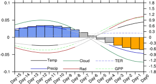 Jung M, Reichstein M, Schwalm CR, Huntingford C, Sitch S, Ahlström A, Arneth A, Camps-Valls G, Ciais P, Friedlingstein P, Gans F, Ichii K, Jain AK, Kato E, Papale D, Poulter B, Raduly B, Rödenbeck C, Tramontana G, Viovy N, Wang Y-P, Weber U, Zaehle S, Zeng N (2017) Compensatory water effects link yearly global land CO2 sink changes to temperature. Nature 541:516–520