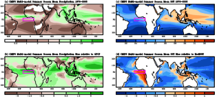 The Director, IITM is gratefully acknowledged for extending full support to carry out this research work. IITM receives full support from the Ministry of Earth Sciences, Government of India. The authors thank Dr. R. Krishnan, Executive Director, CCCR, IITM for guidance and constructive comments on this study. We wish to thank two anonymous reviewers as well as the Editor for their valuable comments and suggestions, which improved the manuscript. The World Climate Research Programme's Working Group on Coupled Modelling, responsible panel for CMIP5 and CMIP6 are sincerely acknowledged. The climate modelling groups (listed in Table S1 and S2) are sincerely thanked for producing and making available their model output for global and regional climate research. The Earth System Grid Federation infrastructure (ESGF; http://esgf.llnl.gov/index.html) is also acknowledged for archiving and providing access to the CMIP dataset. The HadISST data were obtained from https://www.metoffice.gov.uk/hadobs/hadisst/. The GPCP precipitation data were obtained from https://psl.noaa.gov/data/gridded/data.gpcp.html. The Climate Data Operators software (CDO; https://code.zmaw.de/projects/cdo/), the Grid Analysis and Display System (GrADS; http://cola.gmu.edu/grads/grads.php) and the NCAR Command Language (NCL; https://www.ncl.ucar.edu/) were extensively used throughout this analysis.