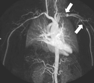Desai MY, Stone JH, Foo TK et al (2005) Delayed contrast-enhanced MRI of the aortic wall in Takayasu’s arteritis: initial experience. AJR Am J Roentgenol 184(5):1427–1431
