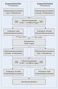 The aim of the study was to compare the gain of knowledge and the acceptance of the teaching methodology between educational films and patient-related teaching.