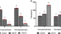 Joanta AE, Filip A, Clichici S, Andrei S, Daicoviciu D (2006) Iodide excess exerts oxidative stress in some target tissues of the thyroid hormones. Acta Physiol Hung 93:347–359