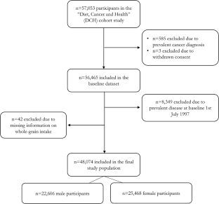 Tjonneland A, Olsen A, Boll K, Stripp C, Christensen J, Engholm G, Overvad K (2007) Study design, exposure variables, and socioeconomic determinants of participation in Diet, Cancer and Health: a population-based prospective cohort study of 57,053 men and women in Denmark. Scand J Public Health 35(4):432–441. https://doi.org/10.1080/14034940601047986
