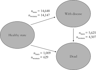 We applied an illness-death multistate model to assess the association between whole-grain intake and life expectancy, both with and without disease, over a 20-year period. Healthy ageing was defined as absence of cancer, ischemic heart disease, stroke, type 2 diabetes, asthma, chronic obstructive pulmonary disease, and dementia during follow-up.