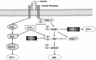 Zeng G, Nystrom FH, Ravichandran LV, Cong LN, Kirby M, Mostowski H, Quon MJ (2000) Roles for insulin receptor, PI3-kinase, and Akt in insulin-signaling pathways related to production of nitric oxide in human vascular endothelial cells. Circulation 101:1539–1545