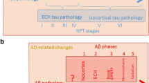Nelson PT, Abner EL, Schmitt FA et al (2009) Brains with medial temporal lobe neurofibrillary tangles but no neuritic amyloid plaques are a diagnostic dilemma but may have pathogenetic aspects distinct from Alzheimer disease. J Neuropathol Exp Neurol 68:774–784. doi:10.1097/NEN.0b013e3181aacbe9