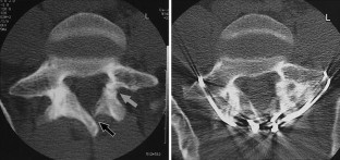 Among 20 patients with symptomatic lumbar spondylolysis who underwent segmental wire fixation between 1996 and 2001, four patients associated with spina bifida occulta were evaluated with an average of 32 months follow-up. Bony union at spondylolysis sites and spina bifida was evaluated using plain X-rays and computed tomography (CT) scans. Clinical symptoms were assessed using Japanese Orthopedic Association scores for back pain (JOA scores) and Henderson’s evaluation of functional capacity.