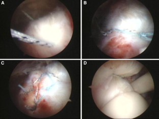 The standard procedure used to repair partial-thickness tears involves initial progression of the lesion to a full-thickness tear prior to tendon repair. However, the option for a bursal-side partial-thickness rotator cuff tear includes the preservation of as much of the remaining intact fibers as possible. Instead of inserting suture anchors in the medial row, as in the conventional suture-bridge technique, two mattress sutures are inserted into the rotator cuff. Full-thickness access is achieved using a percutaneous spinal needle and medial mattress sutures to preserve the articular bone attachment of the remnant fibers and to compress the repaired tendon on the footprint. Our method can help preserve the remnant rotator cuff tendon without tissue damage and can restore the normal rotator cuff footprint.