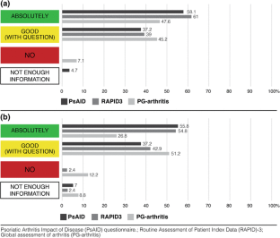 Talli S, Etcheto A, Fautrel B, Balanescu A, Braun J, Canete JD, de Vlam K, de Wit M, Heiberg T, Helliwell P, Kalyoncu U, Kiltz U, Maccarone M, Niedermayer D, Otsa K, Scrivo R, Smolen JS, Stamm T, Veale DJ, Kvien TK, Gossec L (2016) Patient global assessment in psoriatic arthritis - what does it mean? An analysis of 223 patients from the Psoriatic arthritis impact of disease (PsAID) study. Joint Bone Spine 83:335–340. https://doi.org/10.1016/j.jbspin.2015.06.018