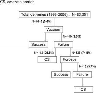 A retrospective cohort study of all women who underwent forceps delivery and/or CS after failed vacuum extraction in 1993–2006 was conducted. Cases were identified by searching the computerized delivery discharge database. All files were reviewed and those who underwent CS were compared to those who underwent forceps delivery.