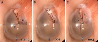 Pneumatic otoscopy is most helpful for optimally assessing the presence of a middle ear effusion (MEE). To evaluate the diagnostic usefulness and to obtain objective parameters of video pneumatic otoscope (VPO) in ears with MEE, we measured the minimal and maximal pressures in the external auditory canal and recorded the movement of the tympanic membrane (TM) during VPO in 28 ears with MEE and 13 healthy ears. The movements of the TM at static stage, positive and negative pressure stages of VPO were analyzed in terms of the position of the umbo and the angle and length of the malleus. The percent volume of air space out of the total tympanomastoid air cell system (the air index) was obtained from the temporal bone CT, and was used as a reference standard. As a result, minimal pressure and the movement of the umbo from negative pressure stage in ears with MEE were significantly different from the normal ears. The minimal pressure, maximal pressure and the movement of umbo from negative pressure to static stage were significantly correlated with the air index. These results may suggest useful parameters for quantitative analysis of VPO for the visual diagnosis of MEE.