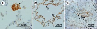 Kohno N, Awaya Y, Oyama T, Yamakido M, Akiyama M, Inoue Y et al (1993) KL-6, a mucin-like glycoprotein, in bronchoalveolar lavage fluid from patients with interstitial lung disease. Am Rev Respir Dis 148:637–642