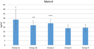 El-Ashmawy HM, Selim FO, Hosny TA, Almassry HN (2019) Association of low serum Meteorin like (Metrnl) concentrations with worsening of glucose tolerance, impaired endothelial function and atherosclerosis. Diabetes Res Clin Pract 150:57–63