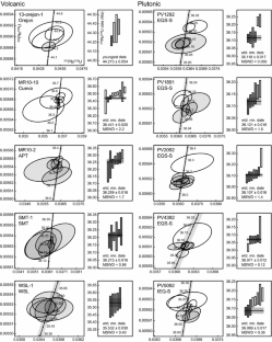 Figure SM1. Comparison of U–Pb zircon dates from the present study and 40Ar/39Ar dates from Zimmerer and McIntosh (2013). Gray bands are the weighted mean zircon 206Pb/238U date ± 2σ uncertainty for each unit (Fig. 2; Supplementary Table SM1). For the southern Organ Needle syenite, the gray band records the range of weighted mean dates from six samples, with 2σ internal uncertainties. For the Sugarloaf Peak quartz monzonite, the two gray bands are the youngest zircon 206Pb/238U dates ± 2σ internal uncertainties, in the two dated samples from that unit. Error bars for the 40Ar/39Ar dates are ± 2σ internal uncertainties from Zimmerer and McIntosh (2013) and do not include uncertainties in the 40K decay constant; inaccuracy in the 40K decay constant would systematically shift all the 40Ar/39Ar dates to younger or older values (PDF 133 kb)