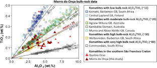 Verma SK, Oliveira EP, Silva PM, Moreno JA, Amaral WS (2017) Geochemistry of komatiites and basalts from the Rio das Velhas and Pitangui greenstone belts, São Francisco Craton, Brazil: implications for the origin, evolution, and tectonic setting. Lithos 284–285:560–577. https://doi.org/10.1016/j.lithos.2017.04.024