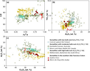 van Acken D, Hoffmann JE, Schorscher JHD, Schulz T, Heuser A, Luguet A (2016) Formation of high-Al komatiites from the Mesoarchean Quebra Osso Group, Minas Gerais, Brazil: Trace elements, HSE systematics and Os isotopic signatures. Chem Geol 422:108–121. https://doi.org/10.1016/j.chemgeo.2015.12.015