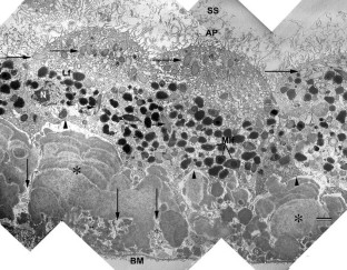 Bairati A, Orzalesi N (1963) The ultrastructure of the pigment epithelium and of the photoreceptor-pigment epithelium junction of the human retina. J Ultrastruct Res 9:484–496