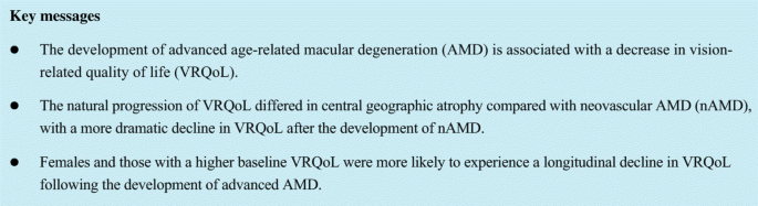 Yuzawa M, Fujita K, Tanaka E, Wang EC (2013) Assessing quality of life in the treatment of patients with age-related macular degeneration: clinical research findings and recommendations for clinical practice. Clin Ophthalmol (Auckland, NZ) 7:1325–1332. https://doi.org/10.2147/opth.S45248