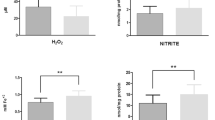 Table 2 shows markers of oxidative stress in nurses and midwives according to work system. We found statistically significant higher red blood cell glutathione peroxidase activity (RBC GSH-Px) in nurses working night shifts (21.0 ± 4.6 vs. 20.0 ± 5.0 U/g Hb, p < 0.009), after adjustment for age, oral contraceptive hormone use, smoking, and drinking alcohol during last 24 h.