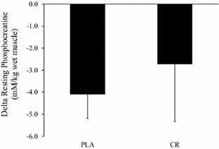 Twenty-five active individuals (24 ± 4 years,) performed wrist flexion exercise within a 1.9 Tesla superconducting magnet before and after 1 week of cast-immobilization. An incremental protocol to fatigue and two constant load (CL1 and CL2) exercise bouts were performed. While casted, participants consumed either 20 g day−1 of CR or a placebo (PLA). 31P magnetic resonance spectroscopy was used to quantify in vivo intramuscular PCr levels.