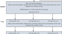 Nosaka K, Kuramata T (1991) Muscle soreness and serum enzyme activity following consecutive drop jumps. J Sports Sci 9(2):213–220. https://doi.org/10.1080/02640419108729882