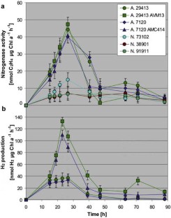 Tsygankov AA, Serebryakova LT, Sveshnikov DA, Rao KK, Gogotov IN, Hall DO (1998) Hydrogen photoproduction by three different nitrogenases in whole cells of Anabaena variabilis and the dependence on pH. Int J Hydrogen Energy 22:859–867