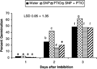 Bethke PC, Libourel I, Reinhol V, Jones RL (2005) Sodium nitroprusside, cyanide, nitrate and nitrite break Arabidopsis seed dormancy in a nitric oxide dependent manner. Planta, epub ahead of print