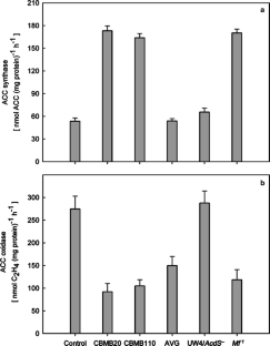 Penrose DM, Glick BR (2001) Levels of ACC and related compounds in exudate and extracts of canola seeds treated with ACC deaminase containing plant growth-promoting bacteria. Can J Microbiol 47:368–372
