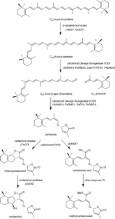 Alder A, Jamil M, Marzorati M, Bruno M, Vermathen M, Bigler P, Ghisla S, Bouwmeester H, Beyer P, Al-Babili S (2012) The path from beta-carotene to carlactone, a strigolactone-like plant hormone. Science 335:1348–1351