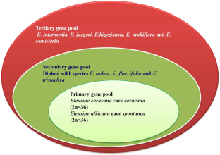 Mallikharjun DR, Hiremath SC, Rao SR, Kumar A, Sheelavanthmath SS (2005) Genome interrelationship in the genus Eleusine (Poaceae) as revealed through heteroploid crosses. Caryologia 58:300–307