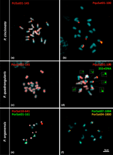 Fig. S3. Chromosomal distribution of scattered satellite DNA repeats in Passiflora quadrangularis and P. cincinnata (TIF 13448 KB)