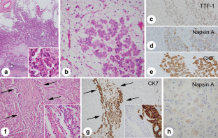 Turner BM, Cagle PT, Sainz IM, Fukuoka J, Shen SS, Jagirdar J (2012) Napsin A, a new marker for lung adenocarcinoma, is complementary and more sensitive and specific than thyroid transcription factor in the differential diagnosis of primary pulmonary carcinoma: evaluation of 1674 cases by tissue microarray. Arch Pathol Lab Med 136:163–171