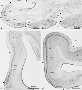 Insausti R, Herrero MT, Witter MP (1997) Entorhinal cortex of the rat: cytoarchitectonic subdivisions and the origin and distribution of cortical efferents. Hippocampus 7:146–183
