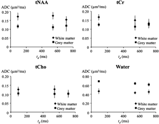 Kan HE, Techawiboonwong A, van Osch MJP, Versluis MJ, Deelchand DK, Henry P-G, Marjańska M, van Buchem MA, Webb AG, Ronen I (2012) Differences in apparent diffusion coefficients of brain metabolites between grey and white matter in the human brain measured at 7 T. Magn Reson Med 67:1203–1209