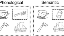 Median RTs on correct trials according to run, similarity, load, and novelty are provided in Fig. 2b. For median RT, significant main effects of similarity (F[1,18] = 10.90, p = .004) and load (F[1,18] = 69.23, p < .001) emerged, indicating that RTs were shorter for phonologically dissimilar as compared to similar trials, and for low- as compared to high-load trials. In addition, there was a significant similarity by load interaction (F[1,18] = 9.56, p = .006). Post hoc paired-sample t tests showed that RTs were shorter for dissimilar high-load compared to similar high-load trials (t18 = 3.66, p = .002), while there was no difference between similar and dissimilar for low-load trials (p = .122). Moreover, a significant run by novelty interaction emerged (F[2,34] = 7.93, p = .002). Linear trend analysis revealed a significant linear decrease in median RT across the three runs for trials with repeating sequences (F[1,18] = 5.82, p = .027) but not for trials with novel sequences (p = .715), thus reflecting implicit learning of the repeating sequence. Furthermore, the similarity by novelty interaction was significant (F[1,18] = 10.32, p = .005), as were the novelty by load (F[1,18] = 4.73, p = .043) and the similarity by novelty by load interaction (F[1,18] = 7.43, p = .014). To resolve the three-way interaction, post hoc paired-sample t tests were performed, comparing median RTs on trials with repeating and novel sequences according to similarity and load. For similar high-load trials, the repeating sequence significantly decreased RTs by 17.9% relative to novel sequences (t18 = − 2.51, p = .022). A small but significant opposite pattern was found for dissimilar high-load trials, which showed a 4.1% increase in RT for repeating sequences (t18 = 2.12, p = .048), due mainly to unusually low RTs for dissimilar novel trials during run 1. For both similar and dissimilar low-load trials, RTs did not differ between the two novelty conditions (both p > .299).