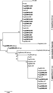 Tamura K, Dudley J, Nei M, Kumar S (2007) MEGA4: Molecular Evolutionary Genetics Analysis (MEGA) software version 4.0. Mol Biol Evol 24(8):1596–1599