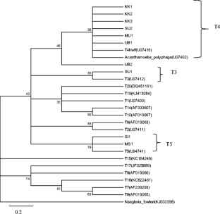 Schroeder JM, Booton GC, Hay J, Niszl IA, Seal DV, Markus MB, Fuerst PA, Byers TJ (2001) Use of subgenic 18S ribosomal DNA PCR and sequencing for genus and genotype identification of acanthamoebae from humans with keratitis and from sewage sludge. J Clin Microbiol 39(5):1903–1911