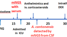 Zhou Z, Barennes H, Zhou N, Ding L, Zhu YH, Strobel M (2009) Two outbreaks of eosinophilic meningitis in Yunann (China) clinical, epidemiological and therapeutical issues. Bull Soc Pathol Exot 102:75–80