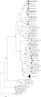Several surveys of Sarcocystis infection in sika deer in Japan have shown a high prevalence, but the identification has been unclear because molecular data have been lacking or have been limited to 18S ribosomal RNA gene sequences. Thus, in our previous study based on such sequences, some Sarcocystis isolates from sika deer were not clearly separated from other species in the phylogenetic analysis. In the present study, we therefore characterized sarcocyst isolates from sika deer (Cervus nippon centralis) at the mitochondrial cytochrome c oxidase subunit I gene (cox1). Moreover, we developed a multiplex PCR based on cox1 sequences of all species found, so that we could rapidly identify sarcocysts of these species. Twenty-one sarcocysts from nine sika deer were examined. Five distinct cox1 sequence types, each with a high sequence identity (> 99%), were found, and the sarcocysts could thus be classified into five species. Based on the sequence comparisons and the phylogeny, Sarcocystis spp. of types 1, 3, and 5 are considered to represent three new species, which were most closely related to Sarcocystis silva/Sarcocystis truncata, Sarcocystis entzerothi, and Sarcocystis iberica/Sarcocystis venatoria, respectively. There was a slight uncertainly whether Sarcocystis sp. with type 2 sequences represented a new species or was identical to Sarcocystis tarandi. Type 4 sequences showed 99% identity with those of Sarcocystis pilosa from sika deer in Lithuania and have therefore been assigned to this species. In the multiplex PCR, type-specific fragments were successfully amplified for all five Sarcocystis spp., indicating that this assay may be useful for a rapid identification of sarcocysts of these species.