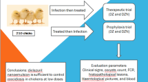 Alnassan AA, Shehata AA, Kotsch M, Schrödl W, Krüger M, Daugschies A, Bangoura B (2013) Efficacy of early treatment with toltrazuril in prevention of coccidiosis and necrotic enteritis in chickens. Avian Pathol 42:482–490