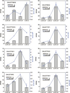 Gilbert MK, Bland JM, Shockey JM, Cao H, Hinchliffe DJ, Fang DD, Naoumkina M (2013) A transcript profiling approach reveals an abscisic acid-specific glycosyltransferase (UGT73C14) induced in developing fiber of Ligon lintless-2 mutant of cotton (Gossypium hirsutum L.). PLoS One 8(9):e75268