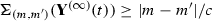 For the integral term on the l.h.s., using \( h_{(I^\pm ,\pm \infty )}(\mathbf {Y}^{^\star n}(s)) \ge h_{(I^\pm ,\pm \infty )}(\underline{\mathbf {Y}}(t_{j-1},t_j)) \ge \frac{\rho }{3}, \) \( \forall s\in [t_{j-1},t_j], \) we obtain
