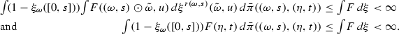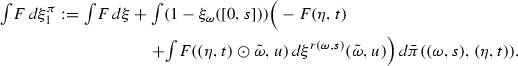for \(\alpha \)-a.a. \((\theta ,s)\) and we know that (7.3) holds. We show that (7.4) holds. Because of (7.5), \( ((\omega ,t) \odot \theta )^*(s) = \omega ^*(t) \), and so \( c_2((\omega ,t) \odot \theta , s) = (\omega ^*(t) - \omega (t) - \theta (s))^3 \). We calculate the left hand side of (7.4).