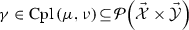 the set of probability measures \(\pi \) on \(\Omega \times \Omega \) for which \(X \sim \mu \) and \(Y \sim \nu \) under \(\pi \), i.e. for which the distribution of X under \(\pi \) is \(\mu \) and that of Y under \(\pi \) is \(\nu \). In applications, a particular role is played by Monge couplings. A Monge coupling from \(\mu \) to \(\nu \) is a coupling \(\pi \) for which \(Y = T(X)\) \(\pi \)-a.s. for some Borel mapping \(T:\Omega \rightarrow \Omega \) that transports \(\mu \) to \(\nu \), i.e. satisfies \(T_{\#} (\mu )=\nu \).
