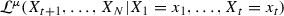 given \(X_1=x_1, \dots , X_t=x_t\) under \(\mu \).
