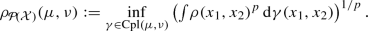 , i.e. for probability measures on \(\Omega \) with finite pth moment their p-Wasserstein distance is