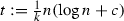 (Adjusted Main Term) Recalling that \(t= \tfrac{1}{2} n\log (mn) + cn\), define