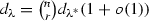 Suppose that \(2 \le k \ll n\). Then, for all \(c\in \mathbb {R}\) (independent of n), we have