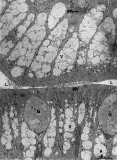 Olsen RE, Myklebust R, Ringø E, Mayhew TM (2000) The influence of dietary linseed oil and saturated fatty acids on caecal enterocytes in Arctic charr (Salvelinus alpinus L.): a quantitative ultrastructural study. Fish Physiol Biochem 22:207–216