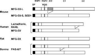Taylor MR, Couto JR, Scallan CD, Ceriani RL, Peterson JA (1997) Lactadherin (formerly BA46), a membrane-associated glycoprotein expressed in human milk and breast carcinomas, promotes Arg-Gly-Asp (RGD)-dependent cell adhesion. DNA Cell Biol 16:861–869