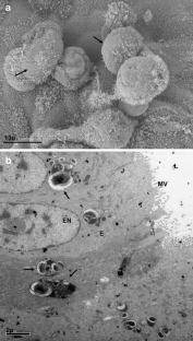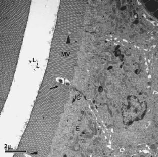 Ringø E, Jutfelt F, Kanapathippillai P, Bakken Y, Sundell K, Glette J, Mayhew TM, Myklebust R, Olsen RE (2004) Damaging effect of the fish pathogen Aeromonas salmonicida ssp. salmonicida on intestinal enterocytes of Atlantic salmon (Salmo salar L.). Cell Tissue Res 318:305–311